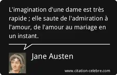 L'imagination d'une dame est très rapide ; elle saute de l'admiration à l'amour, de l'amour au mariage en un instant.
