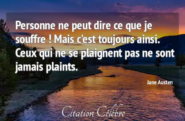 Personne ne peut dire ce que je souffre ! Mais c'est toujours ainsi. Ceux qui ne se plaignent pas ne sont jamais plaints.