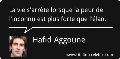 Citation Hafid Aggoune vie : La vie s'arrête lorsque la peur de l'inconnu est plus...