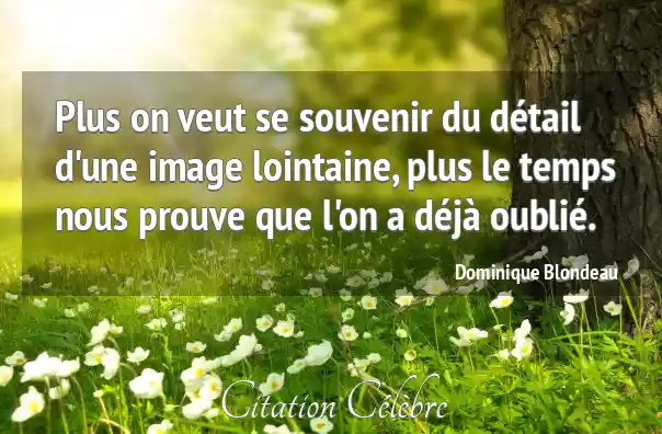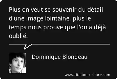 Plus on veut se souvenir du détail d'une image lointaine, plus le temps nous prouve que l'on a déjà oublié.