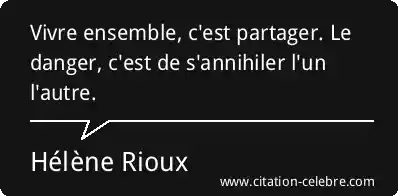 Vivre ensemble, c'est partager. Le danger, c'est de s'annihiler l'un l'autre.