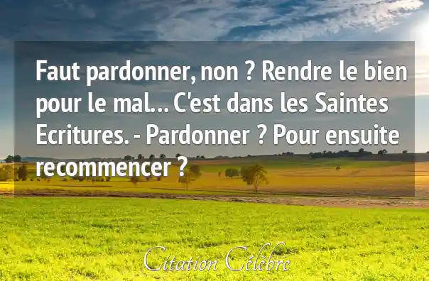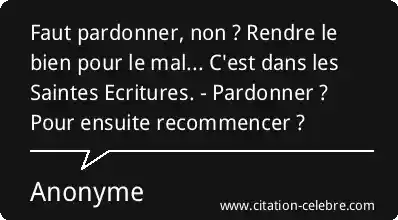 Faut pardonner, non ? Rendre le bien pour le mal... C'est dans les Saintes Ecritures. - Pardonner ? Pour ensuite recommencer ?