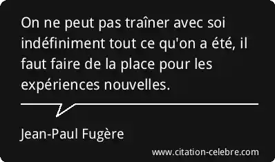 On ne peut pas traîner avec soi indéfiniment tout ce qu'on a été, il faut faire de la place pour les expériences nouvelles.