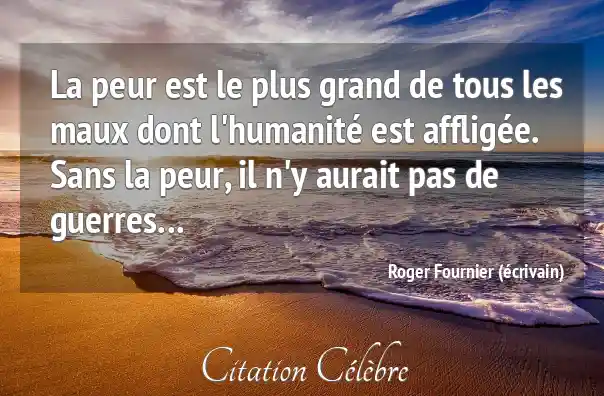 La peur est le plus grand de tous les maux dont l'humanité est affligée. Sans la peur, il n'y aurait pas de guerres...