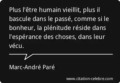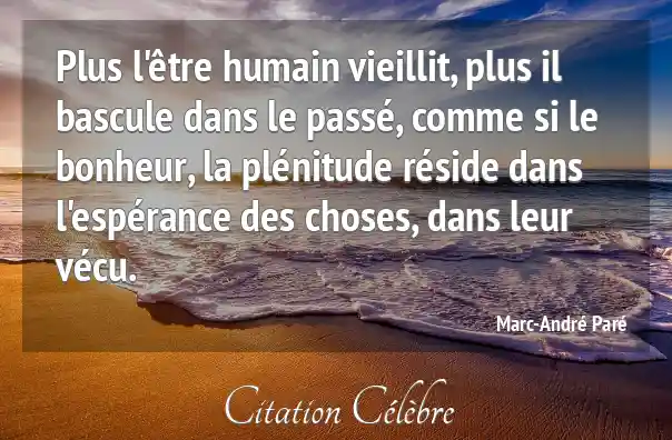 Plus l'être humain vieillit, plus il bascule dans le passé, comme si le bonheur, la plénitude réside dans l'espérance des choses, dans leur vécu.