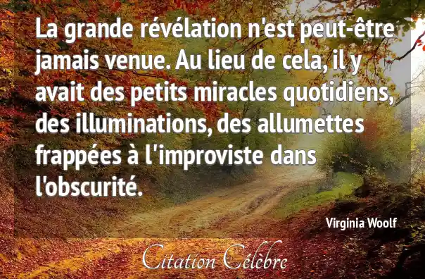 La grande révélation n'est peut-être jamais venue. Au lieu de cela, il y avait des petits miracles quotidiens, des illuminations, des allumettes frappées à l'improviste dans l'obscurité.