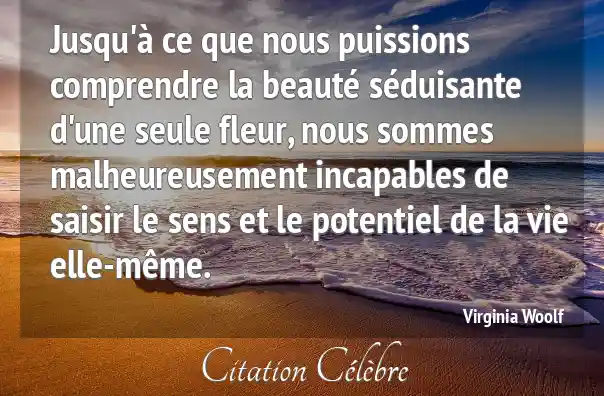 Jusqu'à ce que nous puissions comprendre la beauté séduisante d'une seule fleur, nous sommes malheureusement incapables de saisir le sens et le potentiel de la vie elle-même.