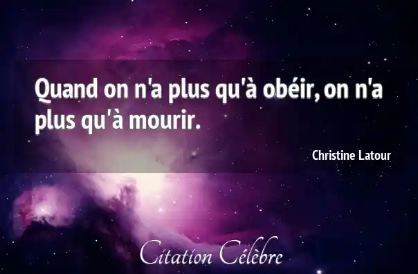 Citation Christine Latour mourir : Quand on n'a plus qu'à obéir, on n'a plus qu'à...