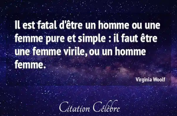 Il est fatal d'être un homme ou une femme pure et simple : il faut être une femme virile, ou un homme femme.