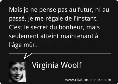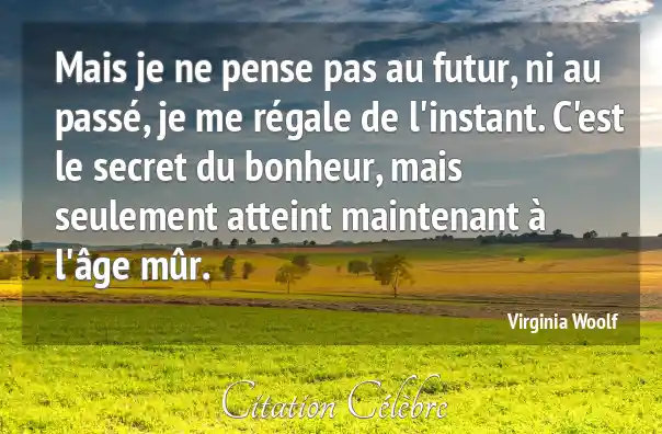 Mais je ne pense pas au futur, ni au passé, je me régale de l'instant. C'est le secret du bonheur, mais seulement atteint maintenant à l'âge mûr.