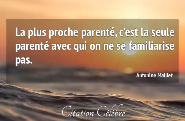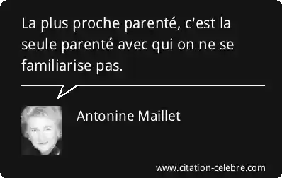 La plus proche parenté, c'est la seule parenté avec qui on ne se familiarise pas.