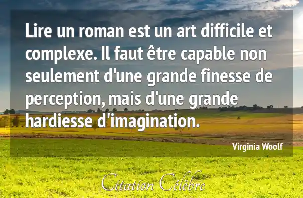 Lire un roman est un art difficile et complexe. Il faut être capable non seulement d'une grande finesse de perception, mais d'une grande hardiesse d'imagination.