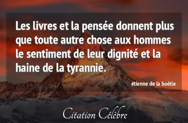 Les livres et la pensée donnent plus que toute autre chose aux hommes le sentiment de leur dignité et la haine de la tyrannie.