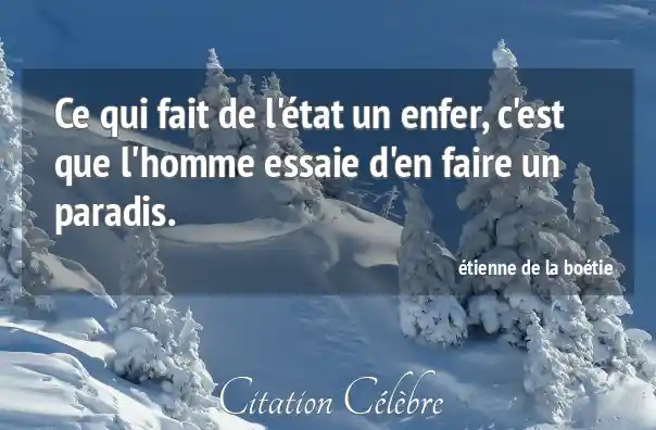 Ce qui fait de l'état un enfer, c'est que l'homme essaie d'en faire un paradis.