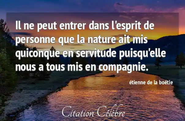 Citation étienne de la boétie nature : Il ne peut entrer dans l'esprit de personne que la...