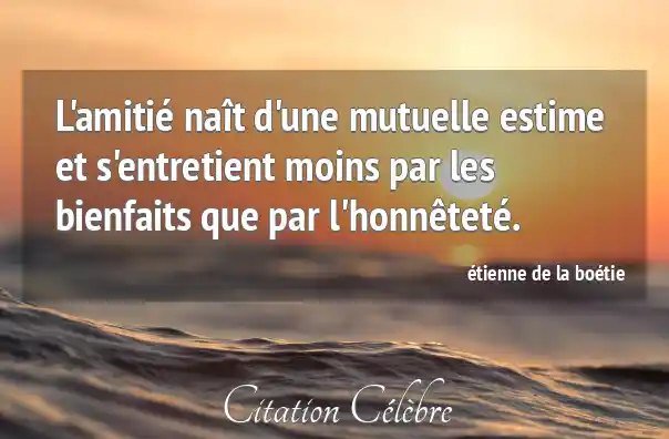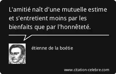 L'amitié naît d'une mutuelle estime et s'entretient moins par les bienfaits que par l'honnêteté.