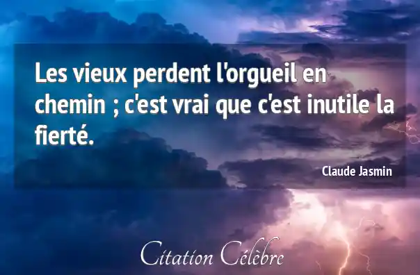 Les vieux perdent l'orgueil en chemin ; c'est vrai que c'est inutile la fierté.