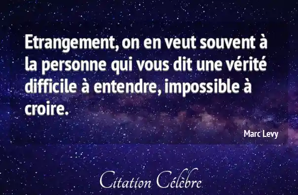 Etrangement, on en veut souvent à la personne qui vous dit une vérité difficile à entendre, impossible à croire.