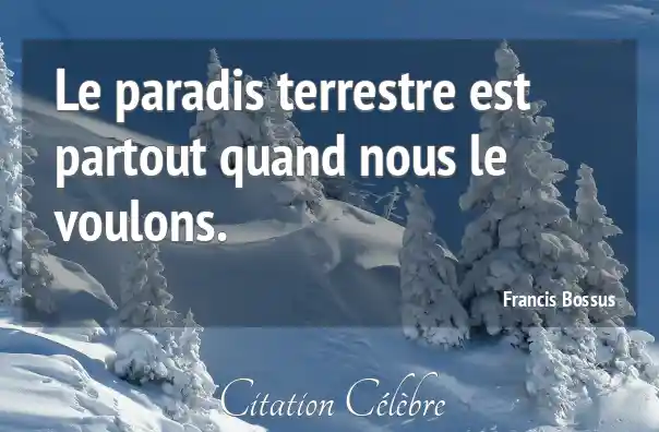Le paradis terrestre est partout quand nous le voulons.