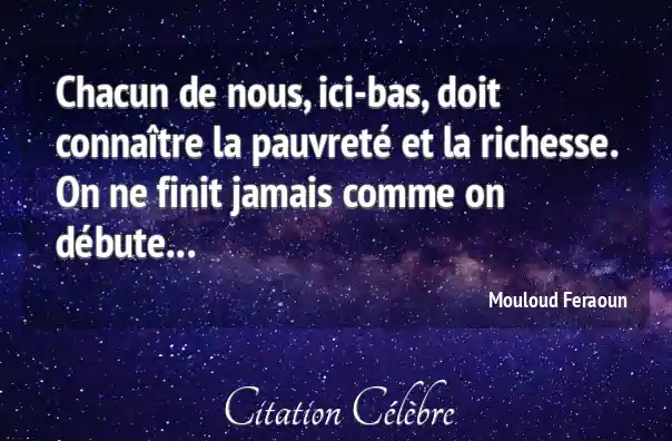 Chacun de nous, ici-bas, doit connaître la pauvreté et la richesse. On ne finit jamais comme on débute...