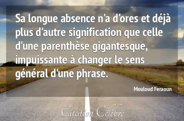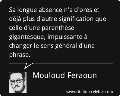 Sa longue absence n'a d'ores et déjà plus d'autre signification que celle d'une parenthèse gigantesque, impuissante à changer le sens général d'une phrase.