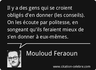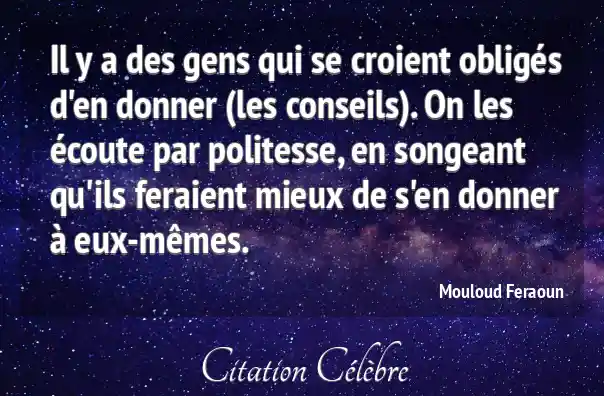 Il y a des gens qui se croient obligés d'en donner (les conseils). On les écoute par politesse, en songeant qu'ils feraient mieux de s'en donner à eux-mêmes.