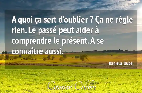 A quoi ça sert d'oublier ? Ça ne règle rien. Le passé peut aider à comprendre le présent. A se connaître aussi.