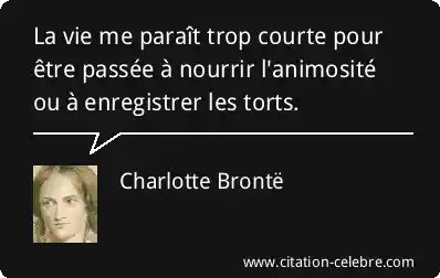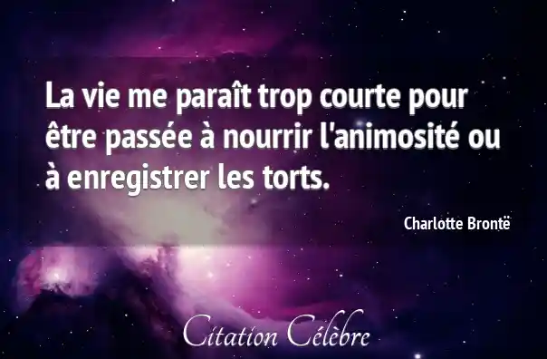 La vie me paraît trop courte pour être passée à nourrir l'animosité ou à enregistrer les torts.