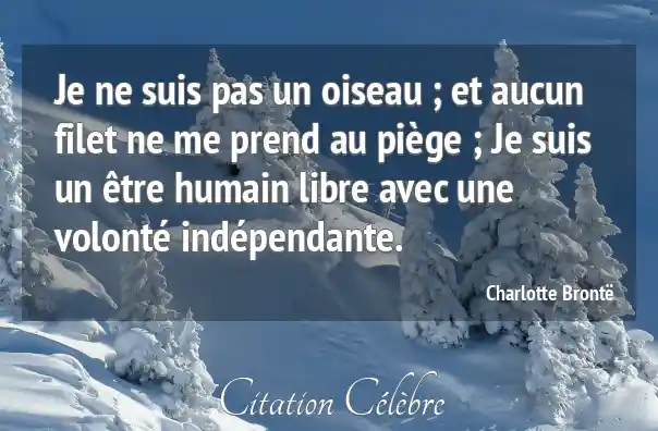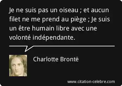 Je ne suis pas un oiseau ; et aucun filet ne me prend au piège ; Je suis un être humain libre avec une volonté indépendante.
