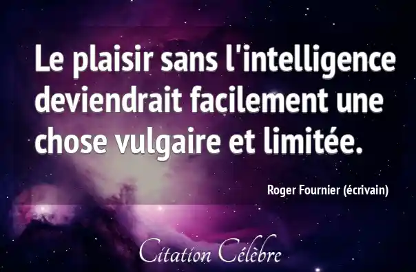Le plaisir sans l'intelligence deviendrait facilement une chose vulgaire et limitée.