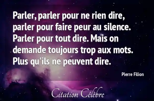 Parler, parler pour ne rien dire, parler pour faire peur au silence. Parler pour tout dire. Mais on demande toujours trop aux mots. Plus qu'ils ne peuvent dire.