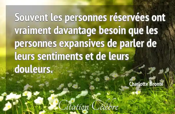 Souvent les personnes réservées ont vraiment davantage besoin que les personnes expansives de parler de leurs sentiments et de leurs douleurs.