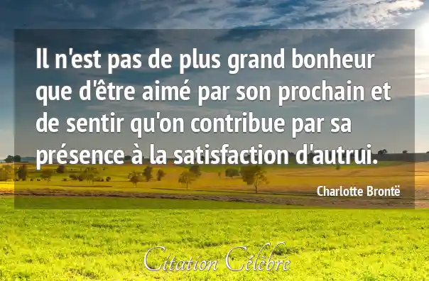 Il n'est pas de plus grand bonheur que d'être aimé par son prochain et de sentir qu'on contribue par sa présence à la satisfaction d'autrui.