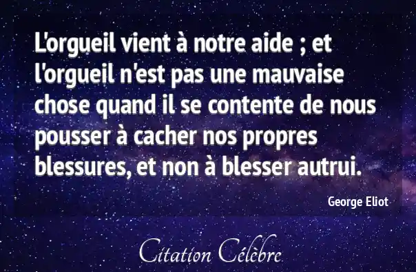 L'orgueil vient à notre aide ; et l'orgueil n'est pas une mauvaise chose quand il se contente de nous pousser à cacher nos propres blessures, et non à blesser autrui.