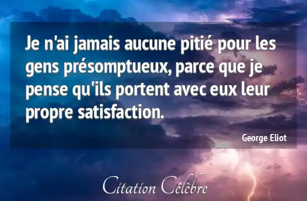 Je n'ai jamais aucune pitié pour les gens présomptueux, parce que je pense qu'ils portent avec eux leur propre satisfaction.