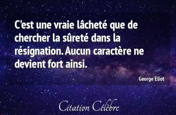 C'est une vraie lâcheté que de chercher la sûreté dans la résignation. Aucun caractère ne devient fort ainsi.