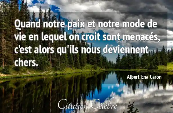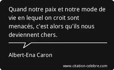 Quand notre paix et notre mode de vie en lequel on croit sont menacés, c'est alors qu'ils nous deviennent chers.