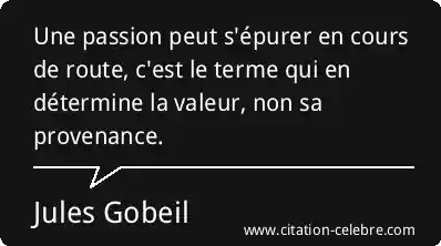 Une passion peut s'épurer en cours de route, c'est le terme qui en détermine la valeur, non sa provenance.