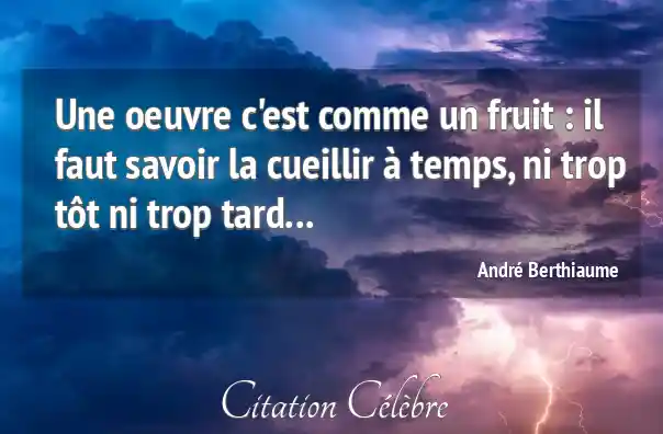 Une oeuvre c'est comme un fruit : il faut savoir la cueillir à temps, ni trop tôt ni trop tard...