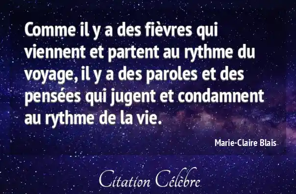 Comme il y a des fièvres qui viennent et partent au rythme du voyage, il y a des paroles et des pensées qui jugent et condamnent au rythme de la vie.