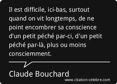 Il est difficile, ici-bas, surtout quand on vit longtemps, de ne point encombrer sa conscience d'un petit péché par-ci, d'un petit péché par-là, plus ou moins consciemment.