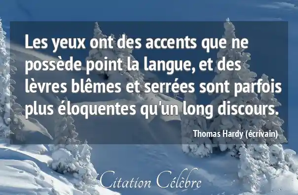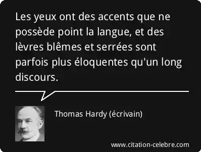 Les yeux ont des accents que ne possède point la langue, et des lèvres blêmes et serrées sont parfois plus éloquentes qu'un long discours.