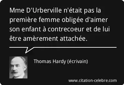 Mme D'Urberville n'était pas la première femme obligée d'aimer son enfant à contrecoeur et de lui être amèrement attachée.