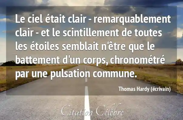 Le ciel était clair - remarquablement clair - et le scintillement de toutes les étoiles semblait n'être que le battement d'un corps, chronométré par une pulsation commune.