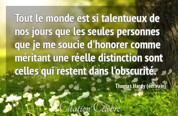 Tout le monde est si talentueux de nos jours que les seules personnes que je me soucie d'honorer comme méritant une réelle distinction sont celles qui restent dans l'obscurité.