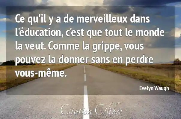 Ce qu'il y a de merveilleux dans l'éducation, c'est que tout le monde la veut. Comme la grippe, vous pouvez la donner sans en perdre vous-même.