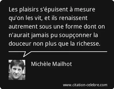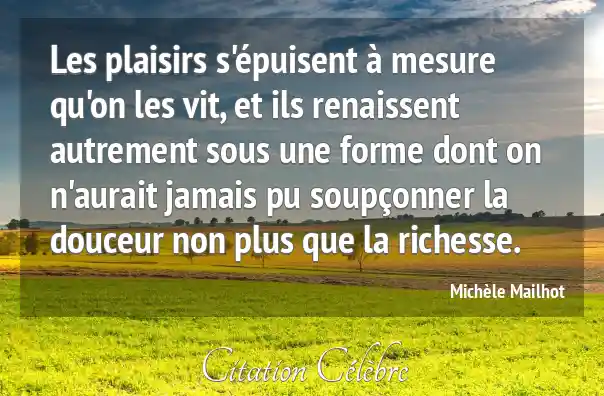 Les plaisirs s'épuisent à mesure qu'on les vit, et ils renaissent autrement sous une forme dont on n'aurait jamais pu soupçonner la douceur non plus que la richesse.