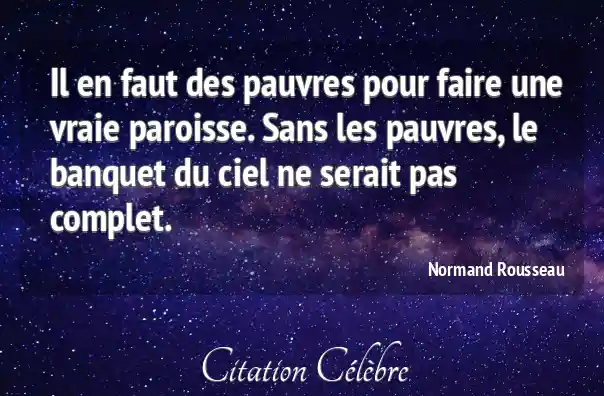 Il en faut des pauvres pour faire une vraie paroisse. Sans les pauvres, le banquet du ciel ne serait pas complet.