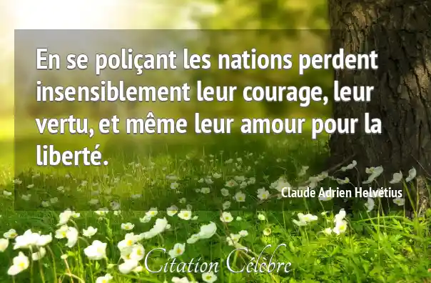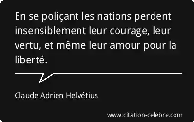 En se poliçant les nations perdent insensiblement leur courage, leur vertu, et même leur amour pour la liberté.