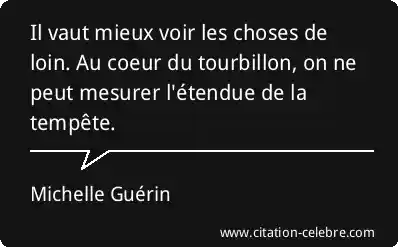 Il vaut mieux voir les choses de loin. Au coeur du tourbillon, on ne peut mesurer l'étendue de la tempête.